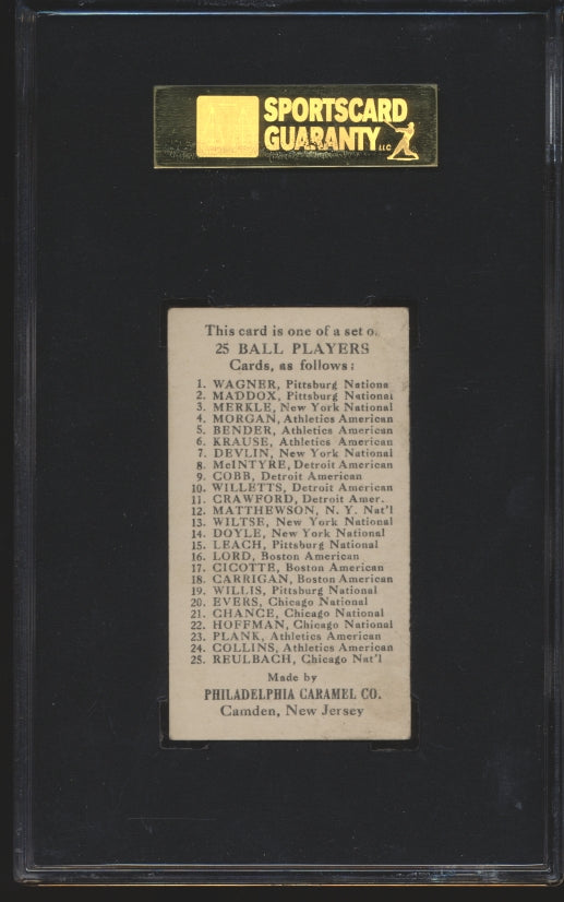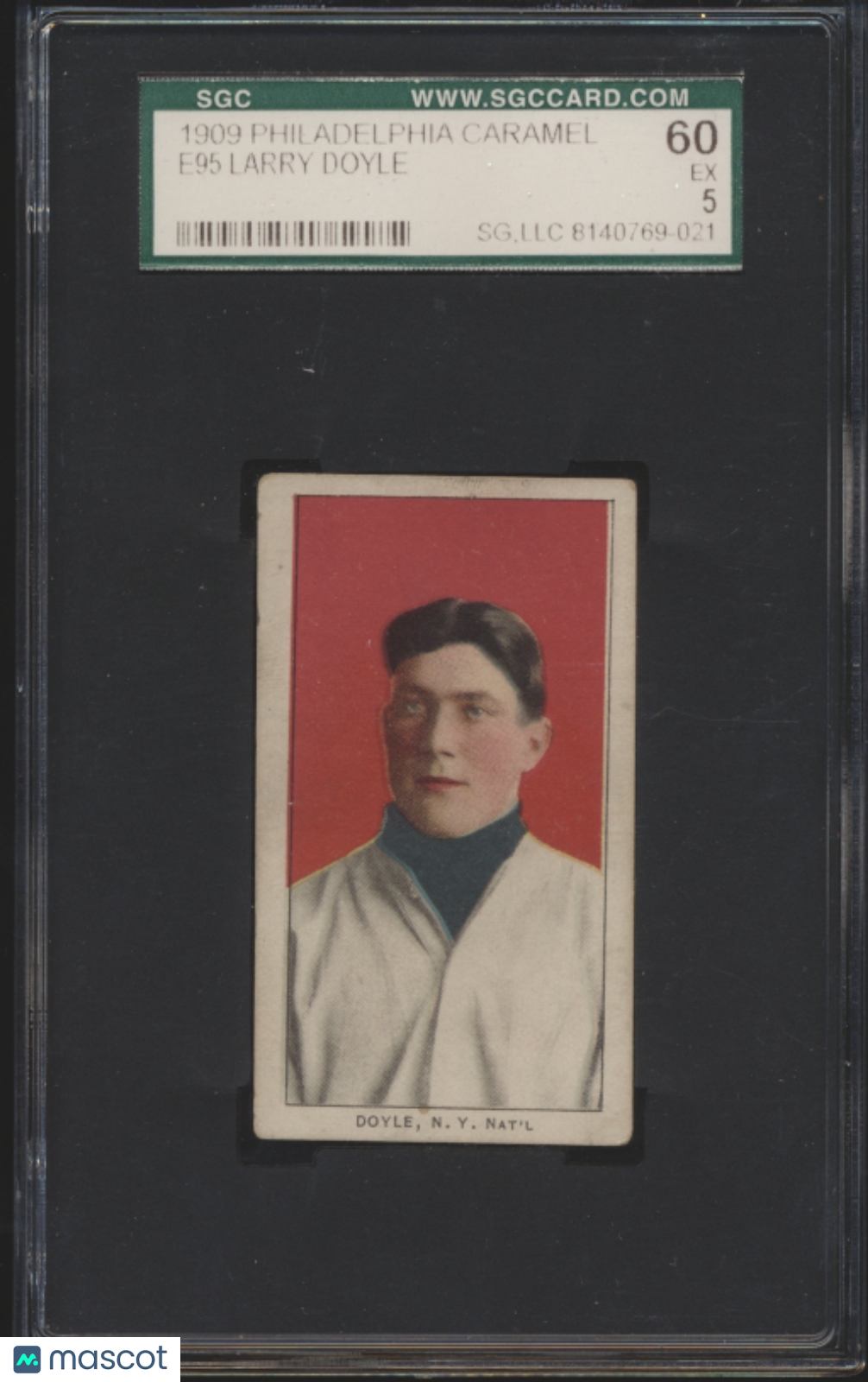 You are purchasing a 1909 Philadelphia Caramel (E95) Larry Doyle SGC 5. You will receive the exact item in the photographs. Thank you for looking. Listed With Mascot.